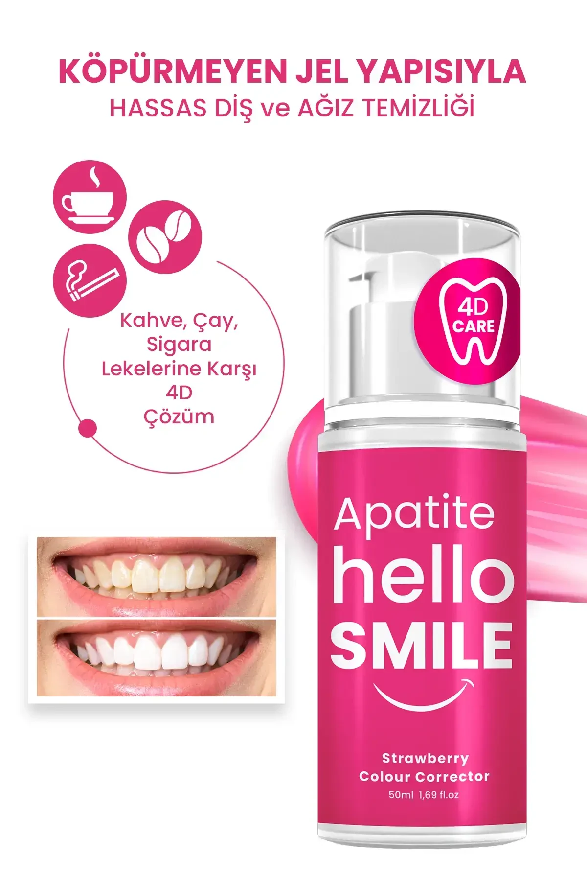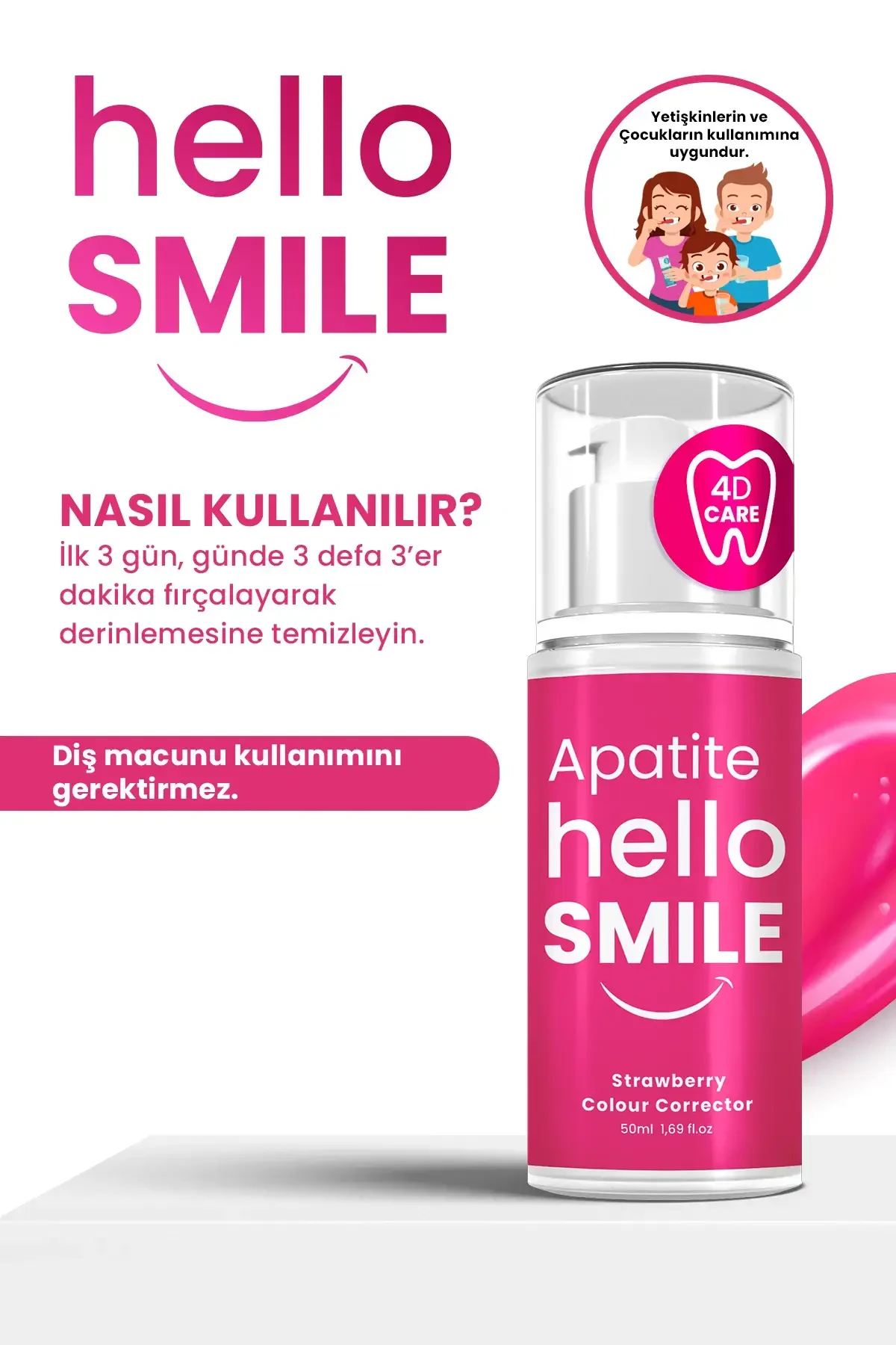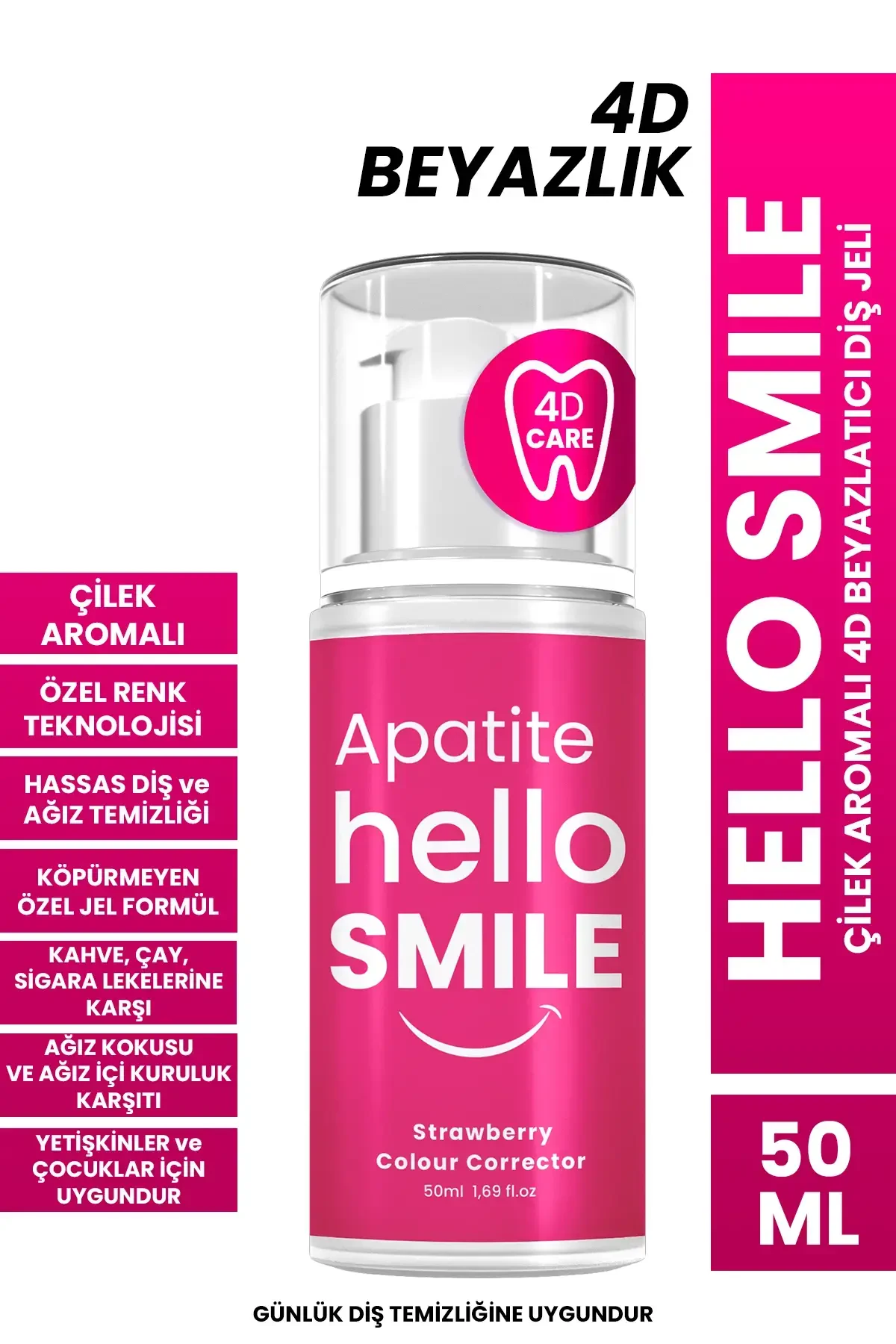 Hello Smile diş jeli, özel formülasyonu ile kalıntı bırakmadan temizlenmesine yardımcı olarak 4D beyazlatıcı etki göstermesi için geliştirdiğimiz bir ağız bakım ürünüdür.