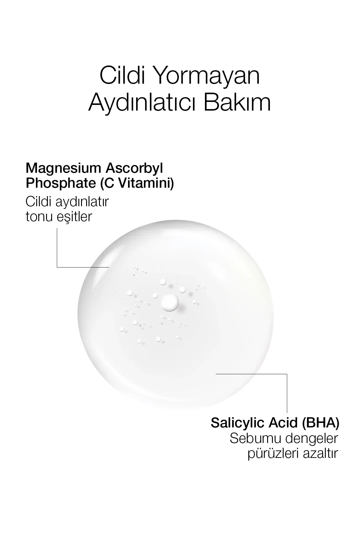 İçeriğinde bulunan Salisilik Asidin (BHA) katkısıyla cildin yağ dengesinin sağlanmasına ve pürüzsüz bir görünüme ulaşılmasına yardımcı olmayı amaçlamaktadır. C Vitaminin cilde sunduğu bakım desteği ile güneş ışınları başta olmak üzere cildin olumsuz çevresel koşullara karşı korunmasının yanı sıra leke ve ince çizgi oluşumuna yönelik bakıma katkı sağlamayı hedeflemektedir. Makyaj altı baz olarak kullanıma uygun yapısıyla doğal nem dengesine kavuşmuş daha ışıltılı bir cilt görünüm için katkı sağlamaktadır.